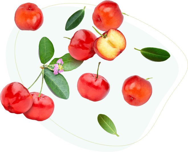 Det er en verdifull kilde til naturlig forekommende C-vitamin og komponenter som karotenoider, fenoler, antocyaniner og flavonoider. C-vitamin fra acerola-frukter absorberes mye bedre enn de syntetiske formene.